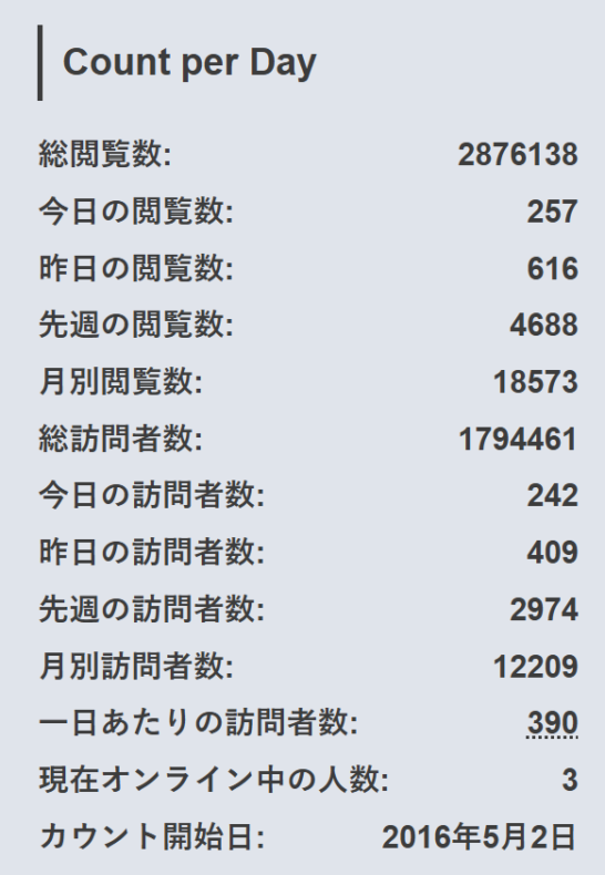 ホームお知らせ Count per Day 終了 2025年12月27日 SHARE ポスト シェア はてブ LINE アクセス数表示につかっていたプログインを削除した。更新がなく、重たかったからで、セキュリティー上の問題もかかえていた。本日は2025年12月27日11時57分。Count per Day終了。287万アクセス数。 記事広告下 コメントを残す コメントをキャンセルメールアドレスが公開されることはありません。 ※ が付いている欄は必須項目ですコメント ※ 名前 ※ メール ※ サイト Δ このサイトはスパムを低減するために Akismet を使っています。コメントデータの処理方法の詳細はこちらをご覧ください。